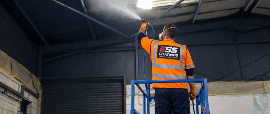 ESS Coatings are specialist commercial spray coating and refurbishment contractors delivering warehouse resprays, wall and ceiling coatings, cladding coatings, and roof coating solutions across Rawreth, Essex, and the South East. We work with facilities managers, landlords, and commercial operators to provide cost-effective refurbishment solutions that extend asset life.